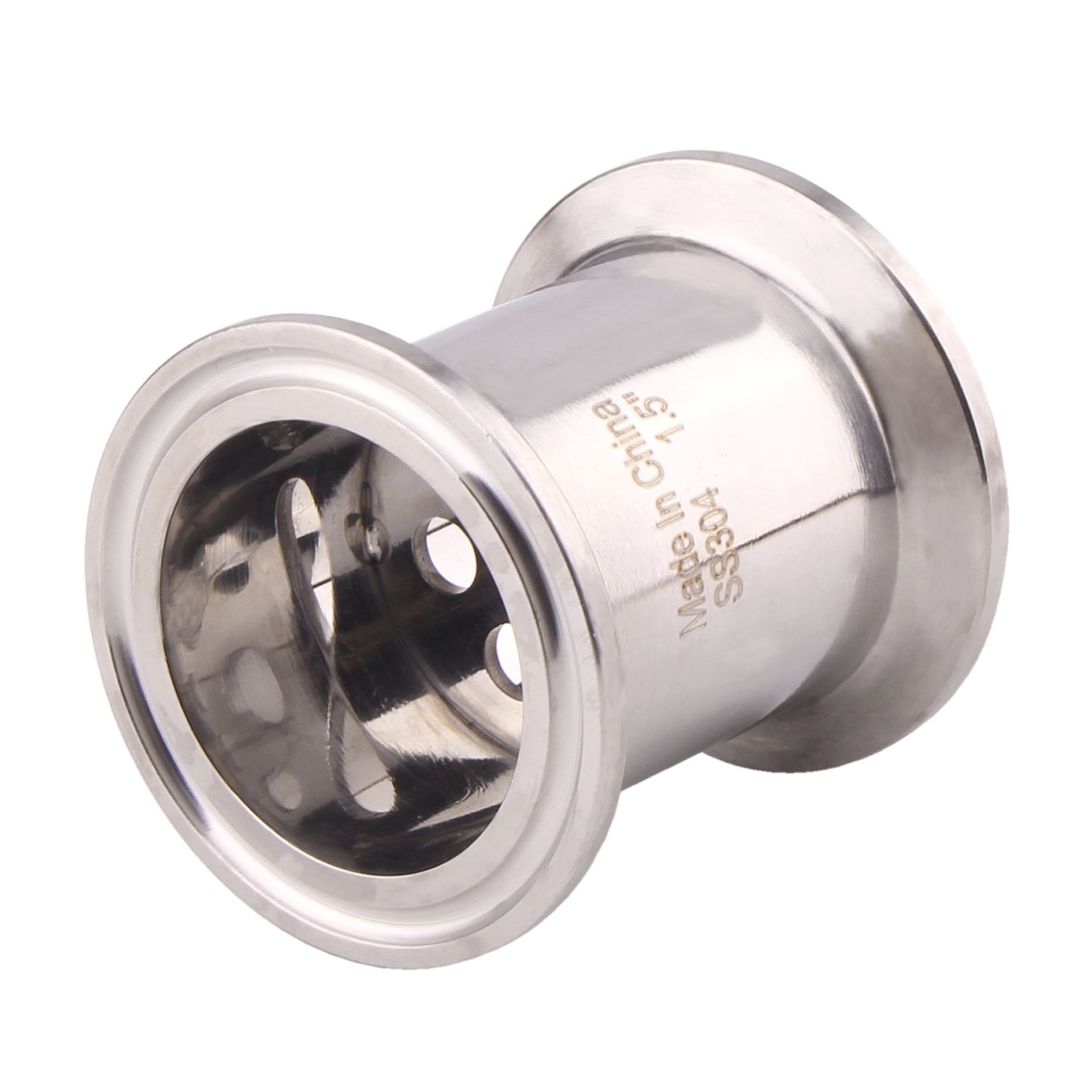 From the Manufacturer Stainless steel tri-clamp filter plates offer the user a great solid platform to help with filtration during the extraction process and they come standard with tri clamp screen gaskets available in different sizes and material types.These filter plates can be used simultaneously with ashless filter papers or any other filtration media like stainless steel ball bearings or steel wool to increase surface and filtration level to remove fats, lipids, waxes and any other unwanted material during the extraction process. Preventing screen gasket displacement Tri Clamp support spools have a rigid surface across the face of the spool, called a perforated plate. This perforated plate is 3mm thick with 6mm holes, and is aligned flush centered in the spool creating a face for tri clamp gaskets to rest against. When filtered sediment accumulates at the face of the screen gasket increasing pressure, the perforated plate holds the gasket in place and prevents any screen displacement.