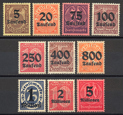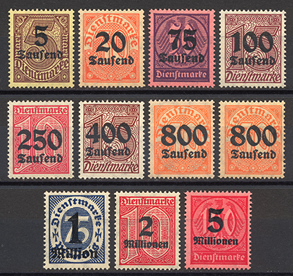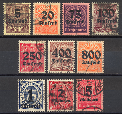93 - Teilauflagen Dienstmarken mit Aufdruck : 250 Tsd M auf 10 Pf