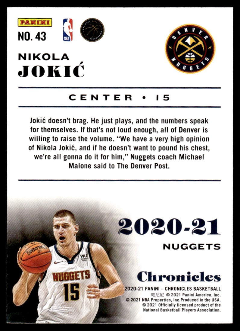 | Nikola Jokic #43 2020-21 Panini Chronicles Denver Nuggets |