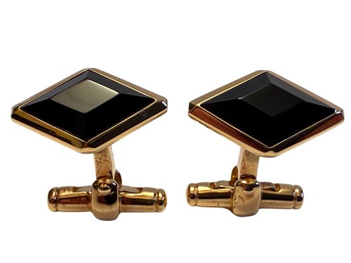 Crafted in Thailand from solid sterling silver these stunning cufflinks feature a black onyx diamond, inspired by Dunhills signature engine turn pattern, set in gold plated sterling silver