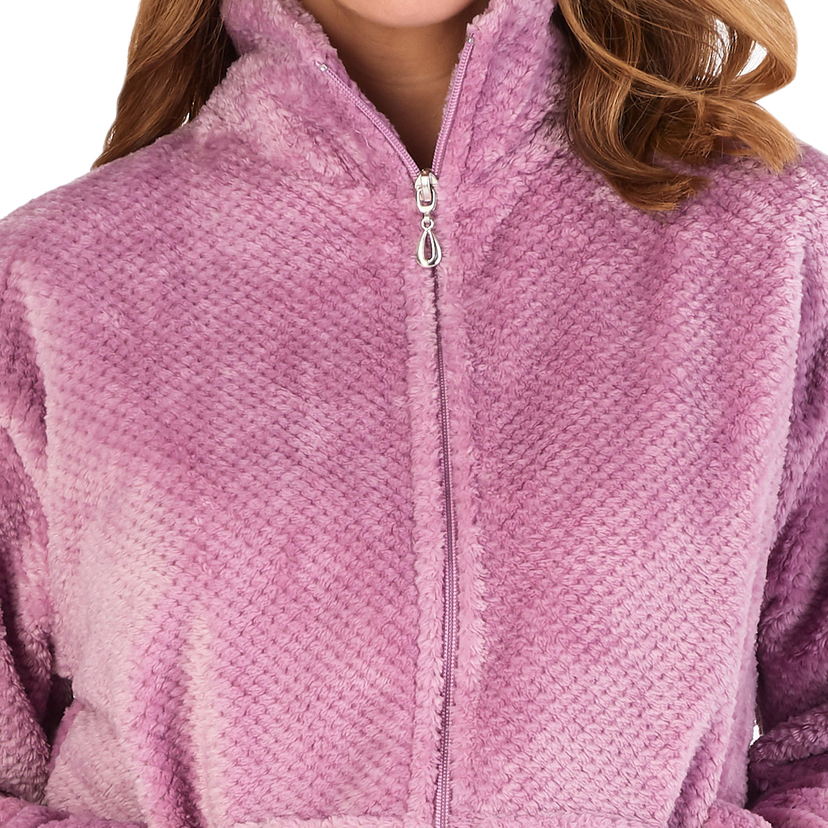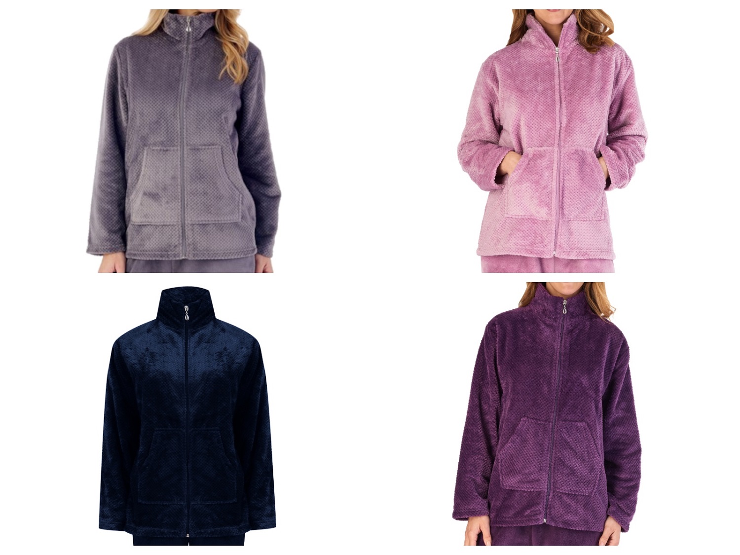 These ladies bed jackets by Slenderella are made from soft waffle fleece and are a zip up style with a large kangaroo pocket.