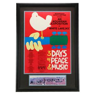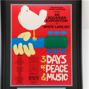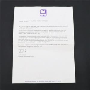 This is an amazing find and it can be yours! This is a 1969 Original Woodstock Poster, 2nd print, framed and with a digital picture of Woodstock. It has been well cared for over the years. There were only 2500 of these posters printed and 75 of them went on posts around the town. The rest would find themselves kept in the original safe. This information is found in a letter that comes along with the poster. This poster comes with a certified letter from John Roberts, a Woodstock producer, certifying that poster is from the pre-Woodstock second printing of the original poster. In addition, he states that, “This poster and others from the original and only run on this thick paper stock have been in the possession of the Kross safe since 1969.”