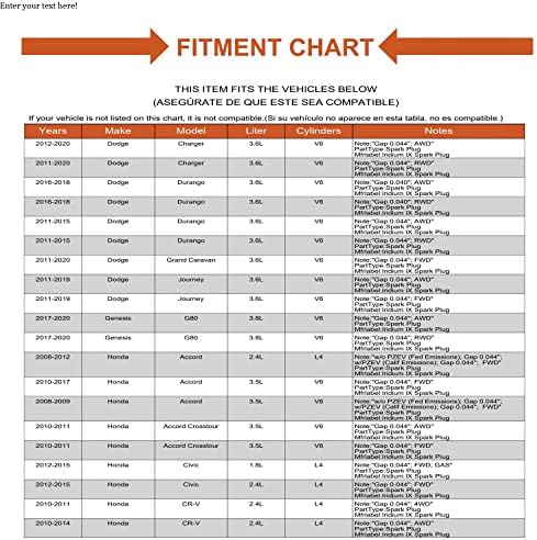 | Dodge | Charger | 2011-2022 | Iridium IX Spark Plug | 3604 | 220 | 6 | 3.6 | Gap 0.044" | |||||