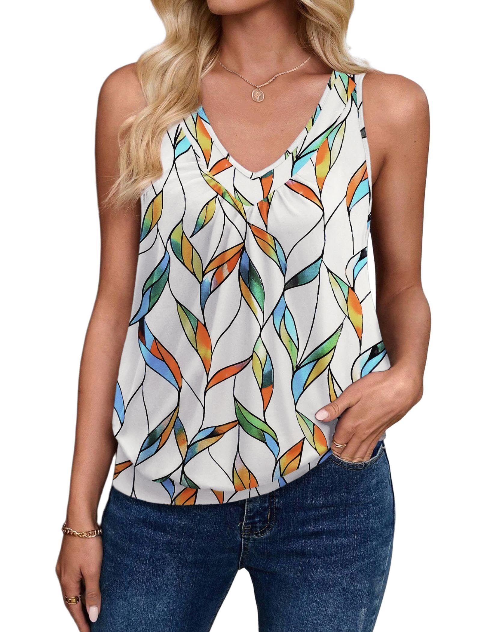 - Features: Loose tank tops for women featuring a v neck, ruched, sleeveless, banded bottom, dressy and casual chic . This Summer tank tops for women loose fit is flattering and to hide belly which suitable for anybody shape