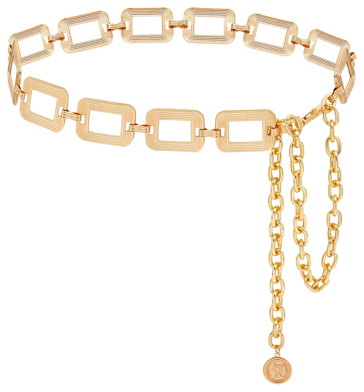 Metal Waist Chain for Women Body Belly Belt Chain Belt for Dress Vest Jeans (Square Gold XL)