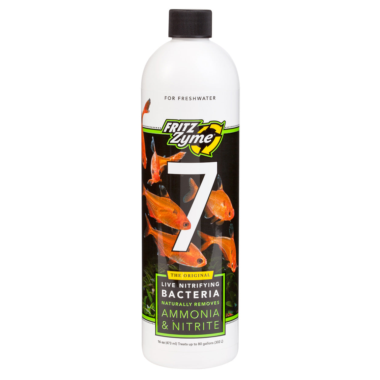 FritzZyme 7 contains specific strains of live nitrifying bacteria proven to reduce fish loss due to toxic levels of ammonia and nitrite. Nitrifying bacteria can take weeks to naturally establish colonies in new aquariums while ammonia and nitrite can reach lethal levels in only a few days. FritzZyme 7 provides the proper balance of bacteria proven to rapidly seed biofilters, greatly reducing the natural cycle time allowing for safe, immediate addition of livestock.
