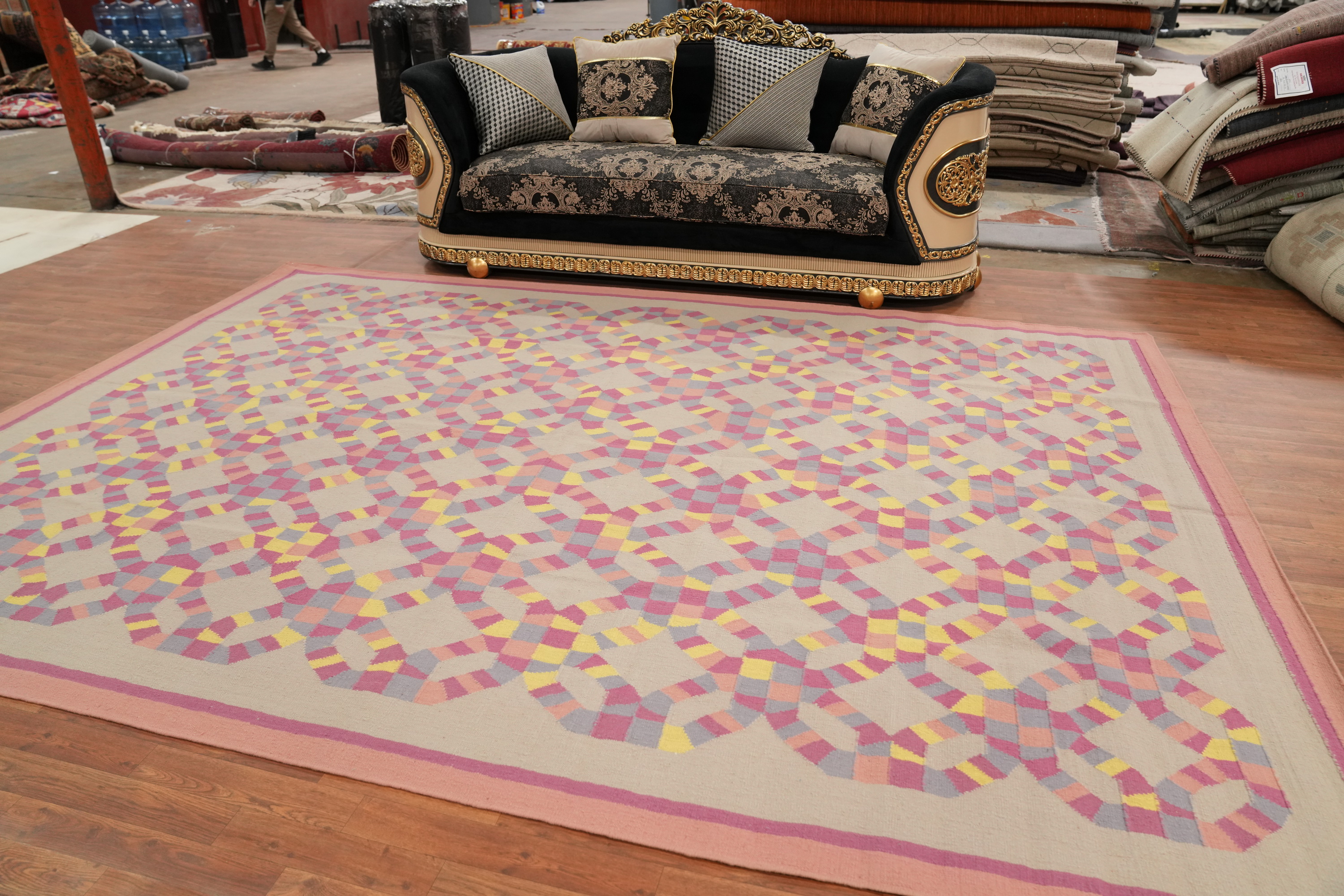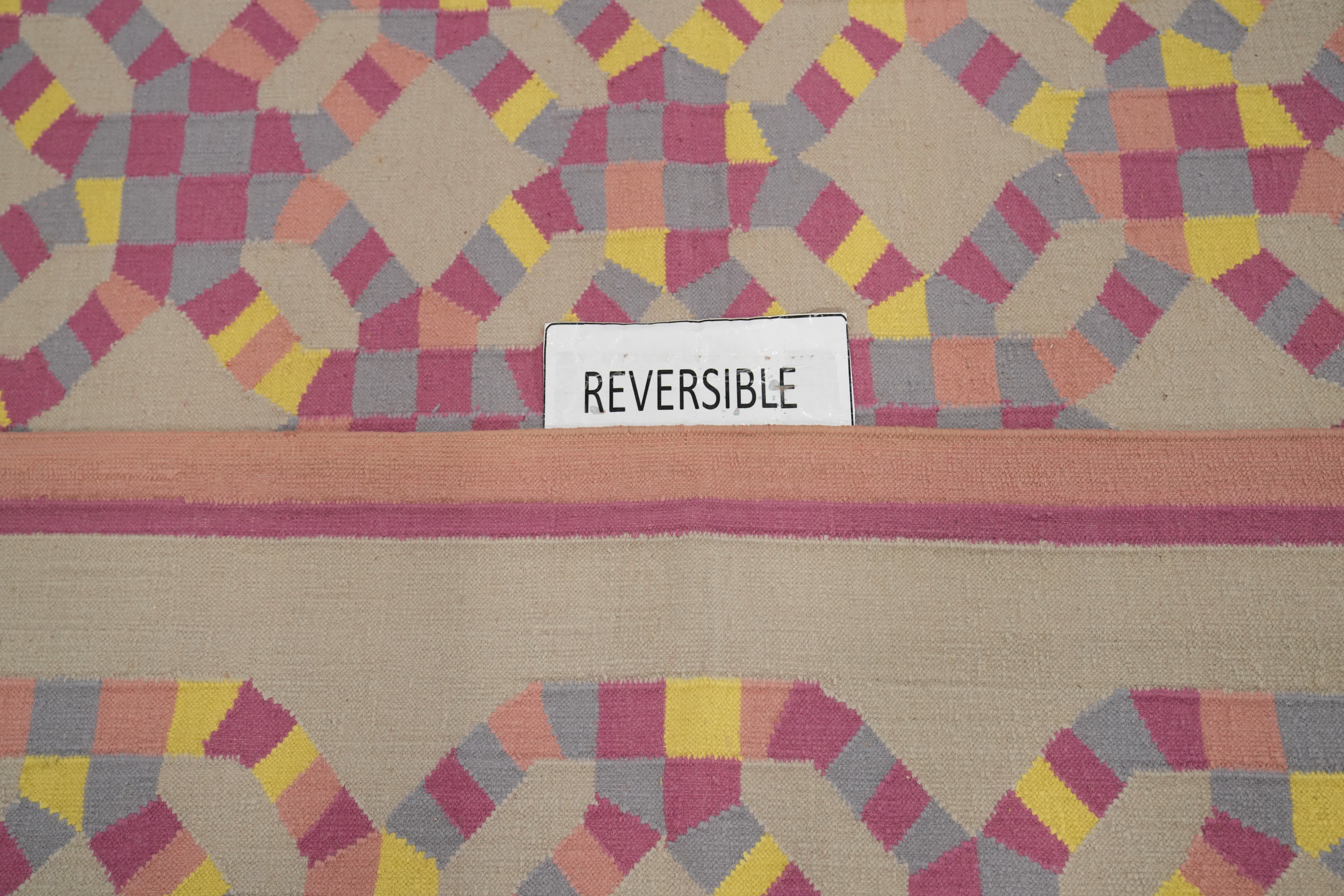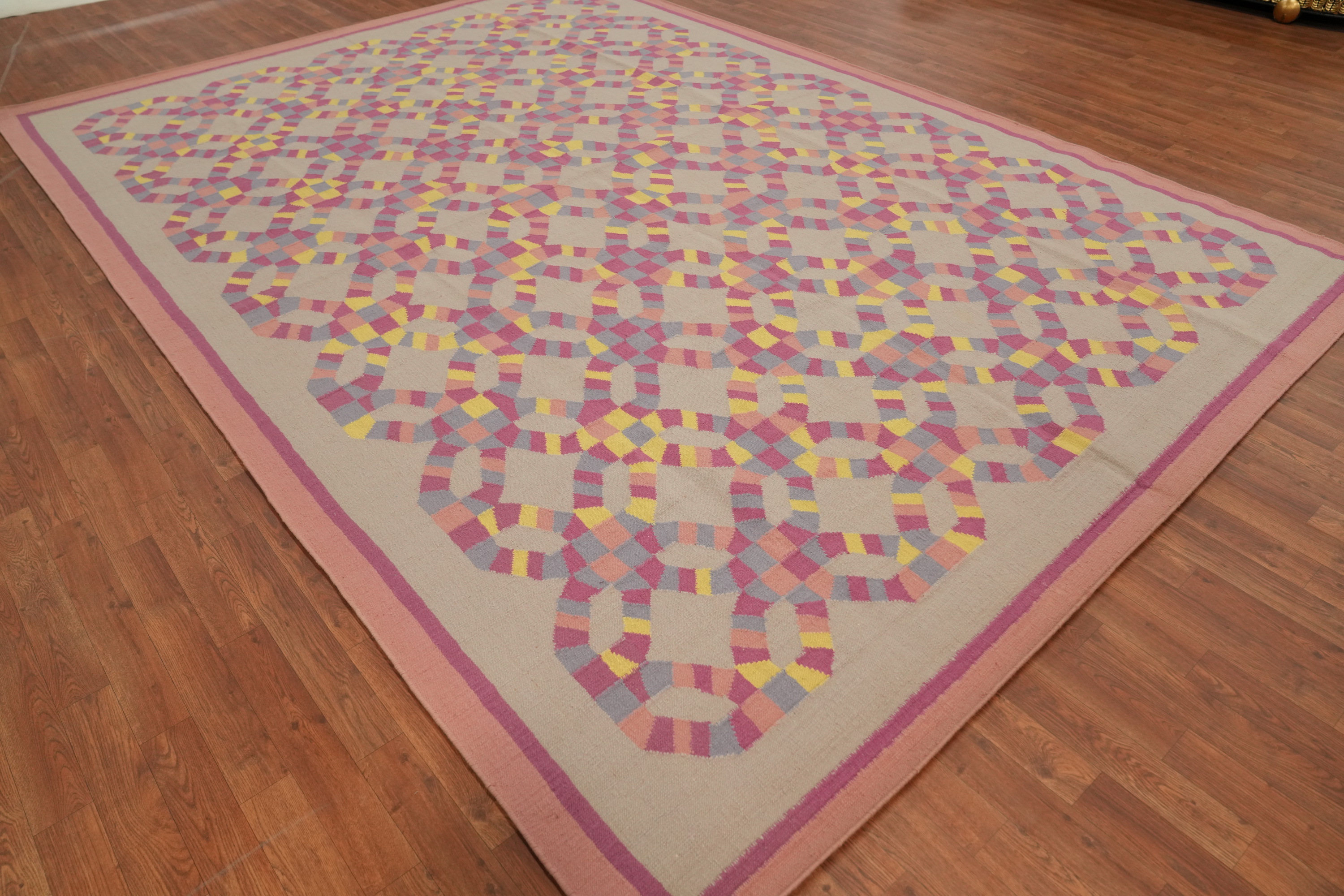Geometric Kilim Durrie Rugs Flatweave Pile Kelim Carpets 9x12 ft