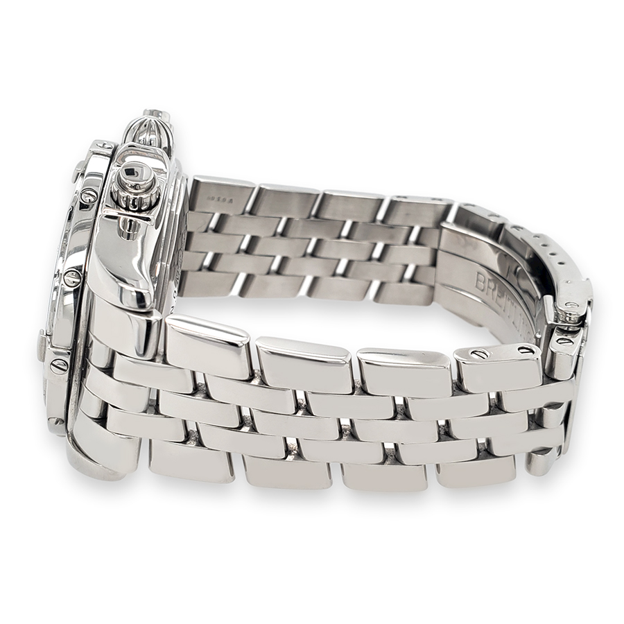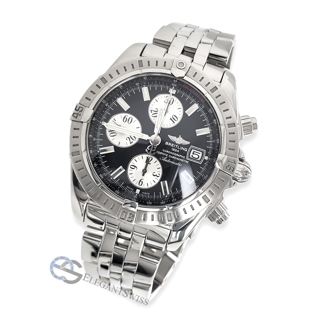 Breitling Chronomat Evolution Chronograph 44mm Black Dial with Silver subdials Stainless Steel Watch. Ref #A13356.