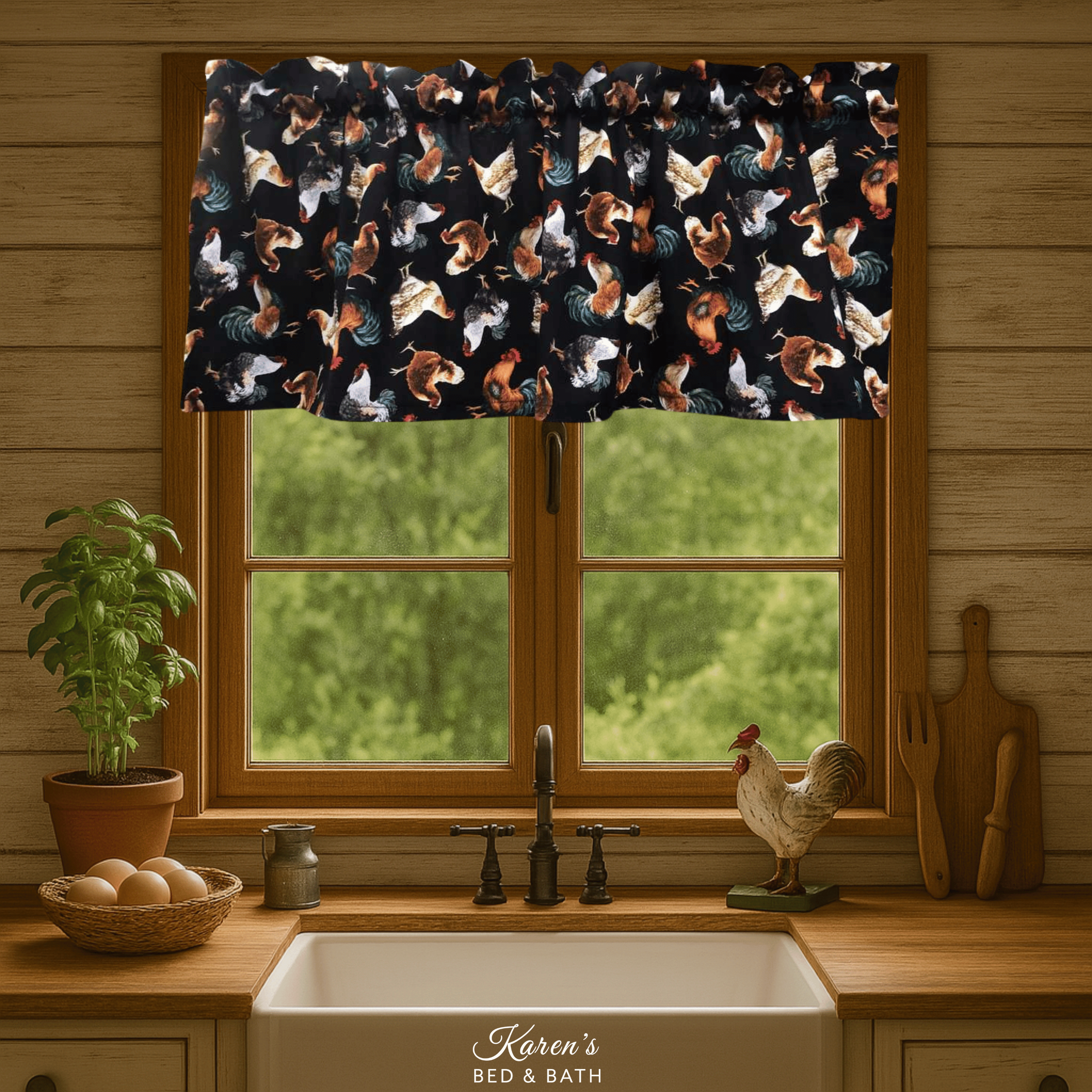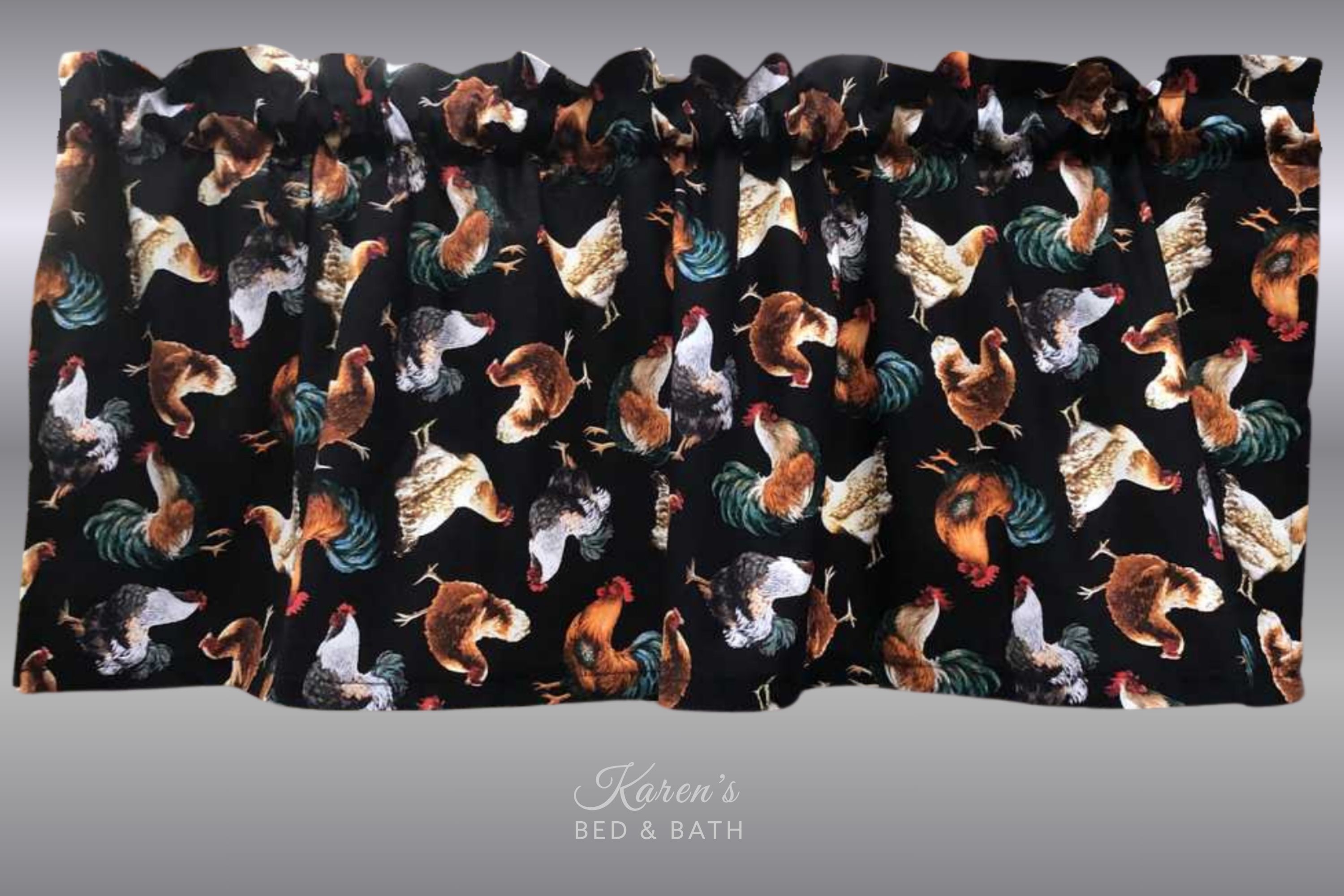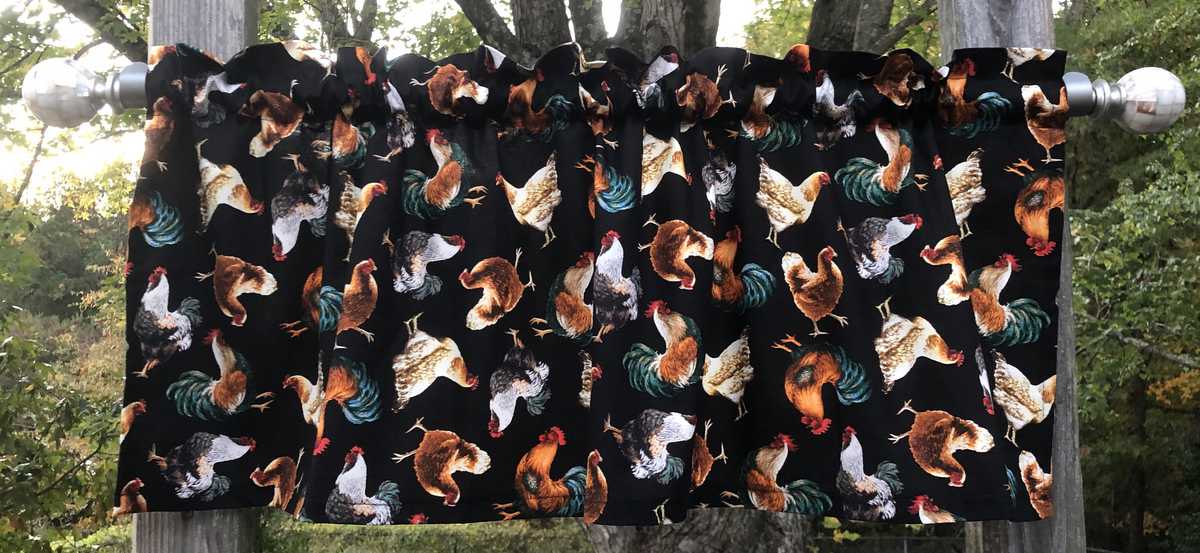 Rooster Farmhouse Valance Farm Barn Animal Chicken Handcrafted Country Black Curtain Valance