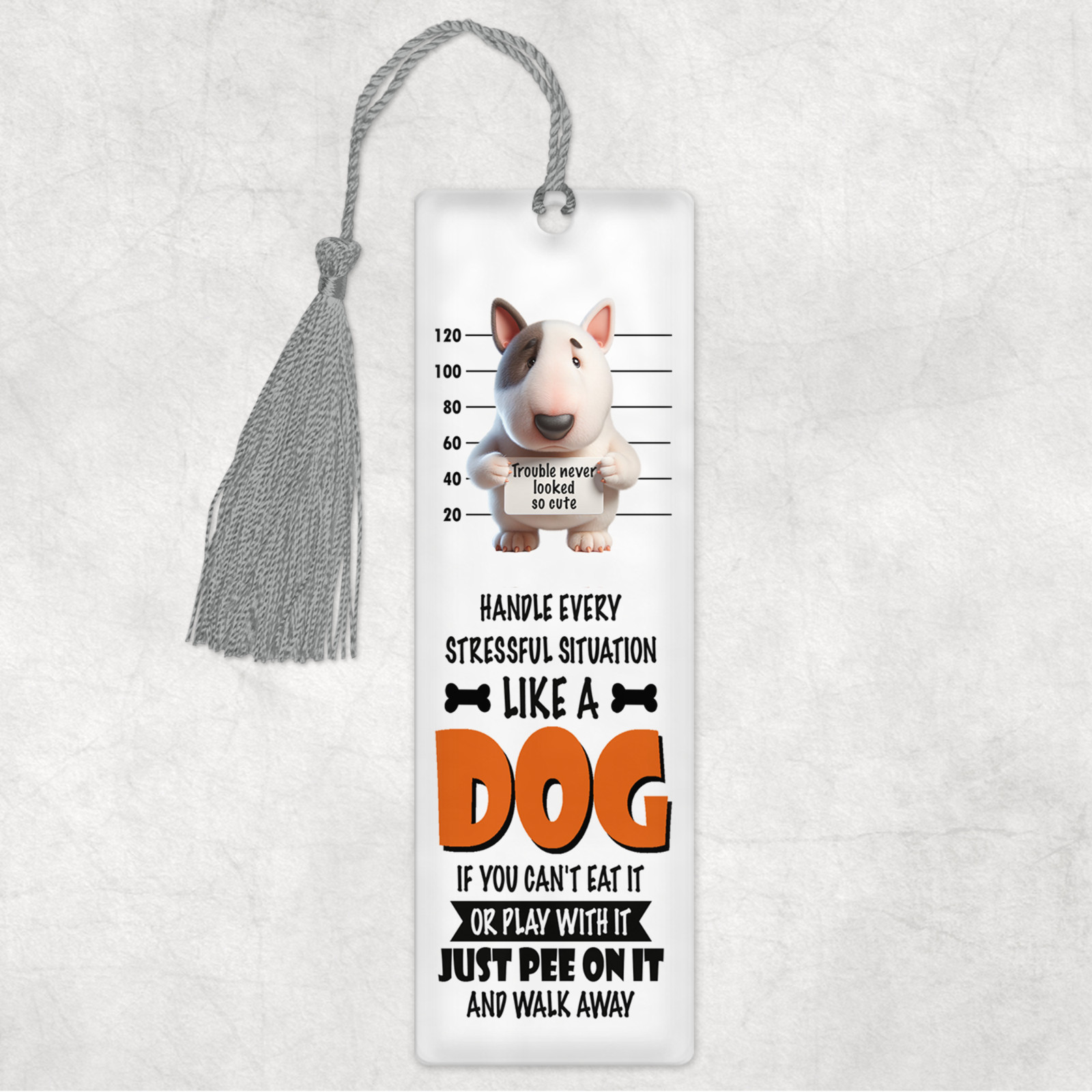 This Bull Terrier Handle Every Situation Like a Dog Bookmark is perfect for any dog lover. The rectangular-shaped bookmark features an adorable image of a Cute Bull Terrier.