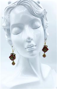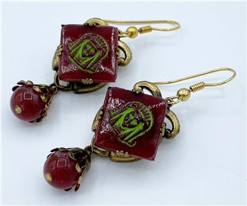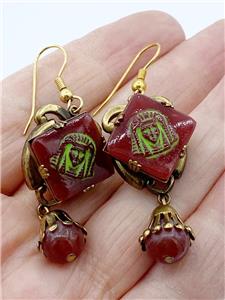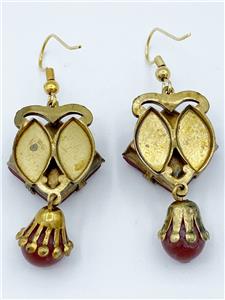 Fabulous Art Deco Egyptian Revival Czech glass earrings, featuring green painted pharaoh's head on carnelian-colored glass. This piece is from the private collection of Leigh Leshner, author to nine books on costume jewelry.