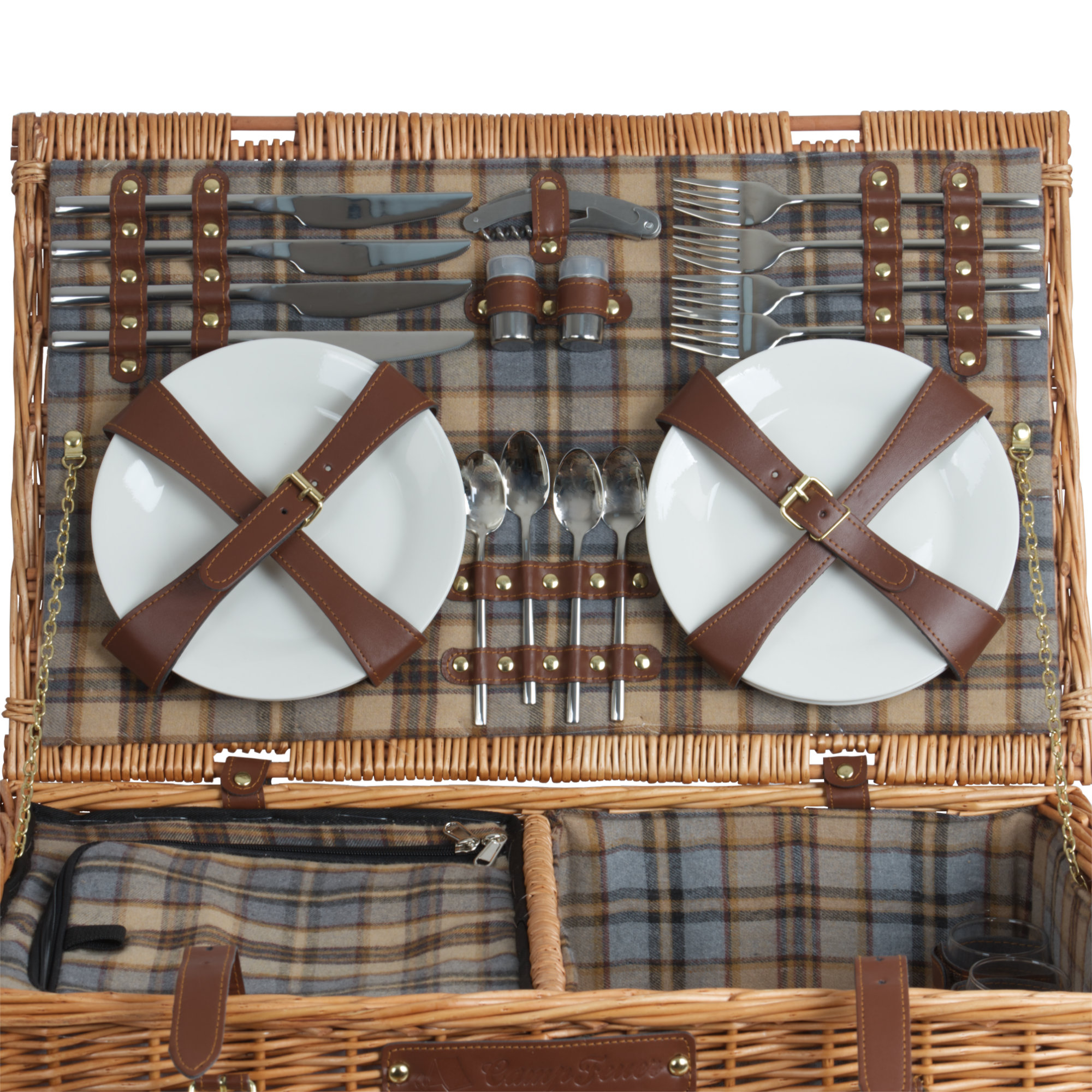 Der Korb beeindruckt nicht nur mit seinem Inhalt, sondern auch mit durchdachtem Design. Die Kunstlederriemen sorgen nicht nur für einen sicheren Verschluss, sondern geben dem Korb auch eine edle Note. Strapazierfähig und langlebig - für stilvolle Picknicks, die in Erinnerung bleiben.