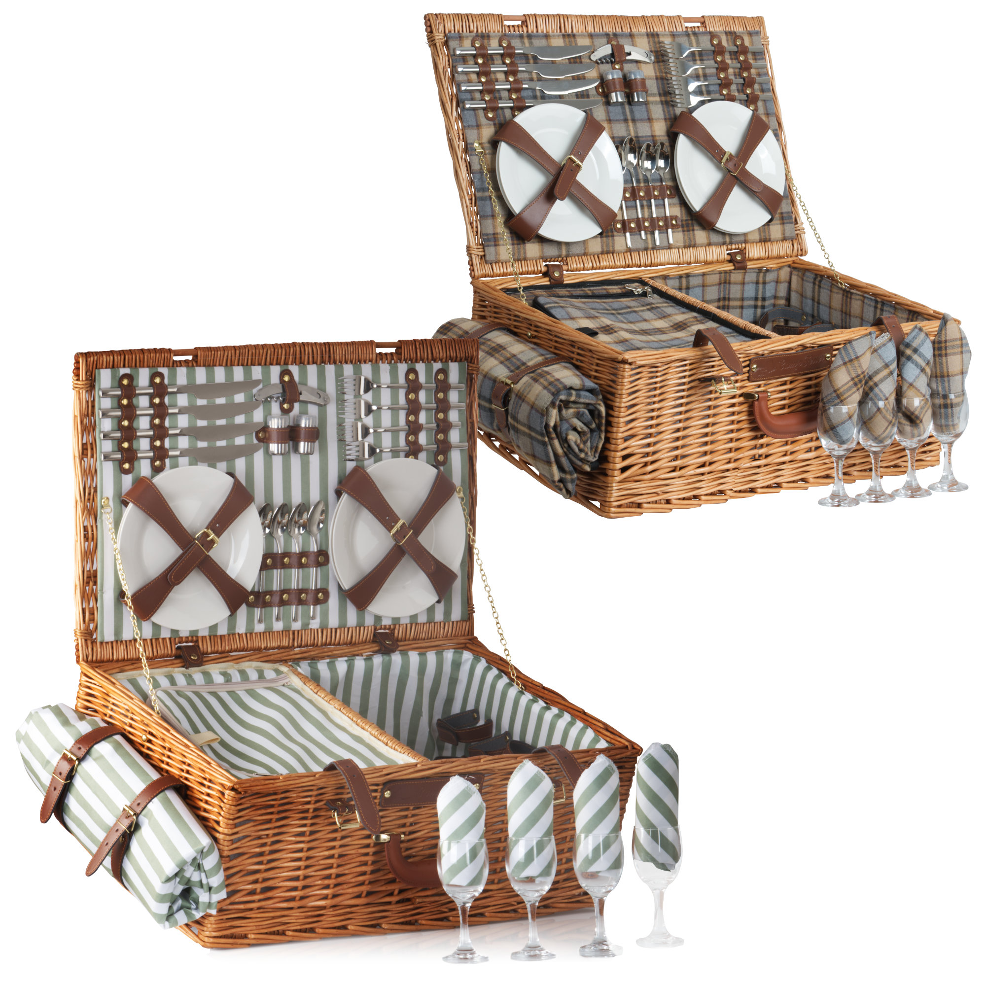 CampFeuer Picknickkorb 4 Personen mit Kühlfach und Geschirr-Set, 29-teilig, Weidenkorb mit Kunstlederriemen