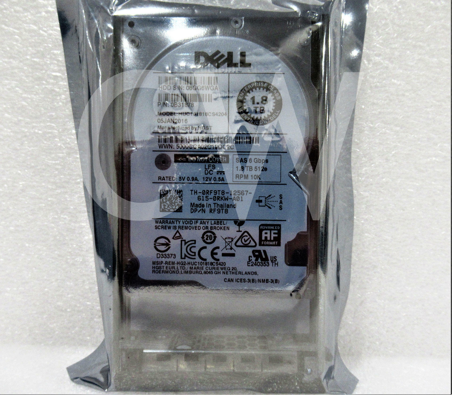 Dell ENTERPRISE RF9T8 0RF9T8 1.8TB 10000RPM 6Gb/s 2.5IN SAS Hard Drive HUC101818CS4204 - Includes R Series Caddy/ Tray (ZERO HOURS HDD)