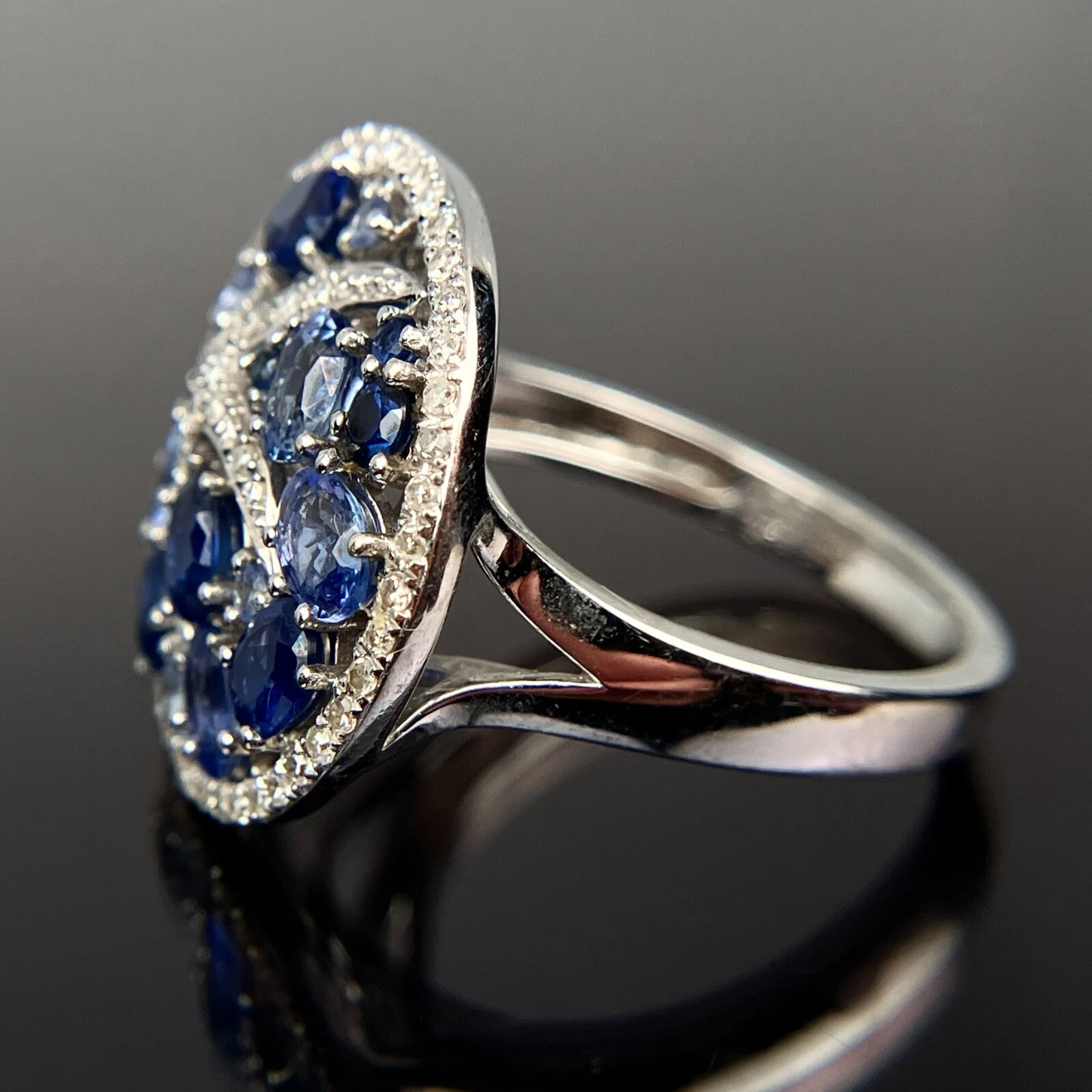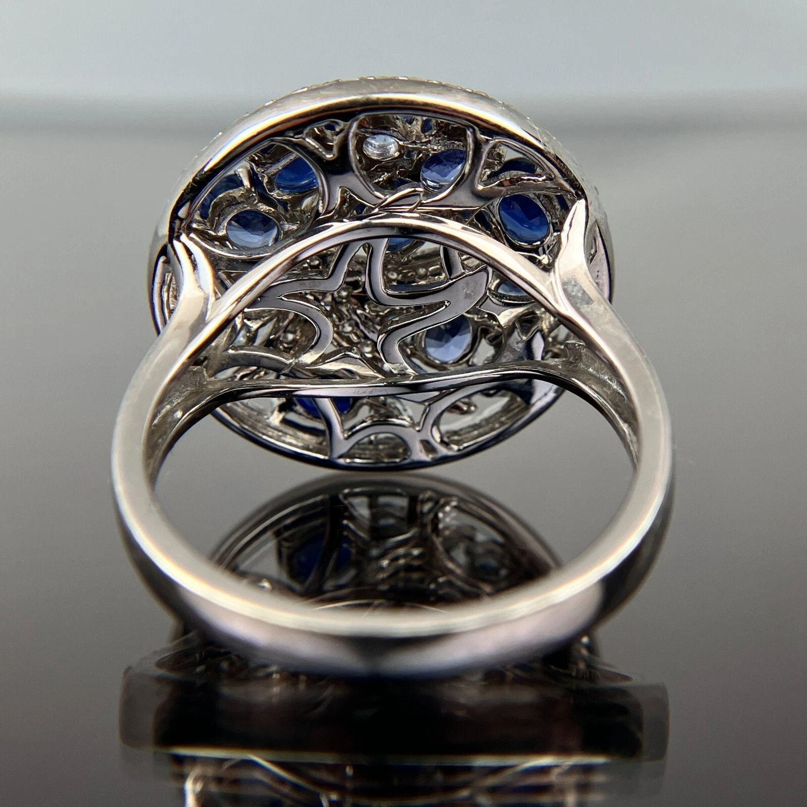 EFFY 14k Diamond & Blue Sapphire Starfish Circle White Gold Ring Size 6.75, 5.22 Grams, 2.44 Carats, Size 6.75