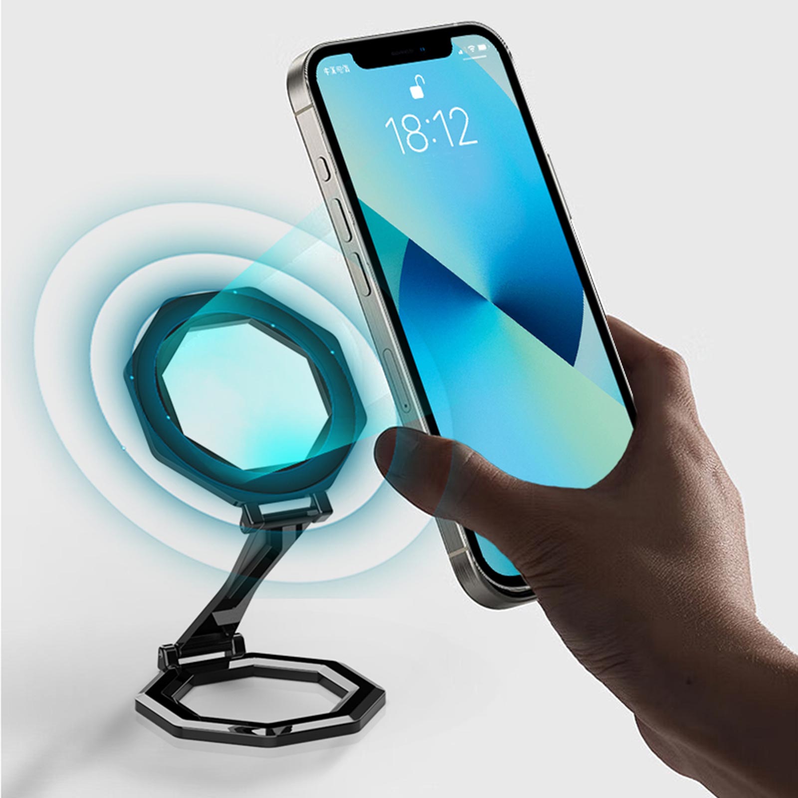 Double-Sided Magnetic Phone Ring Holder for MagSafe Kickstand Magnet Grip Octagon Metal for iPhone 15 14 13 12 Pro Android Phone Stand
