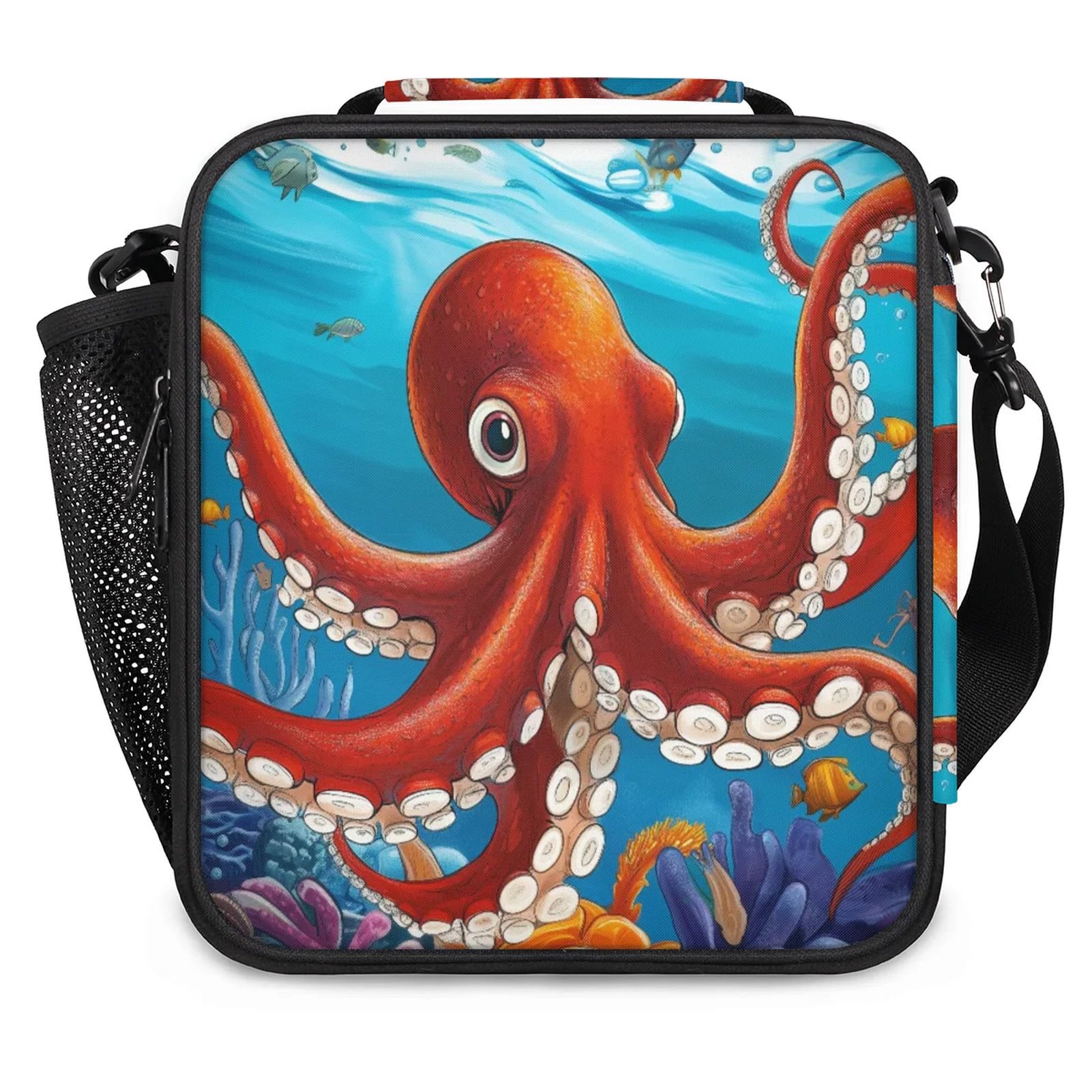 Sea Ocean Shakes Octopus Kids Lunch Bags for Girls Boys Insulated Lunch Box Thermal Lunchbox Tote Bag with Adjustable Strap Leakproof Durable Lunch Cooler for Children Women School Work
