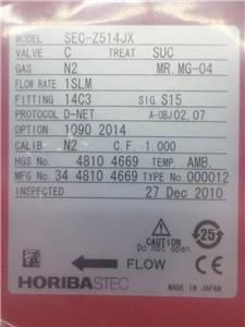 Horiba STEC SEC-Z514JX Gas N2 1 SLM Option 1090 2014 Mass Flow Controller
