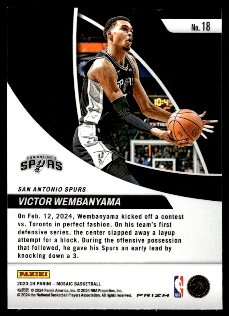 | 2023-24 Mosaic Prizm Elevate Victor Wembanyama Rookie San Antonio Spurs #18 |
