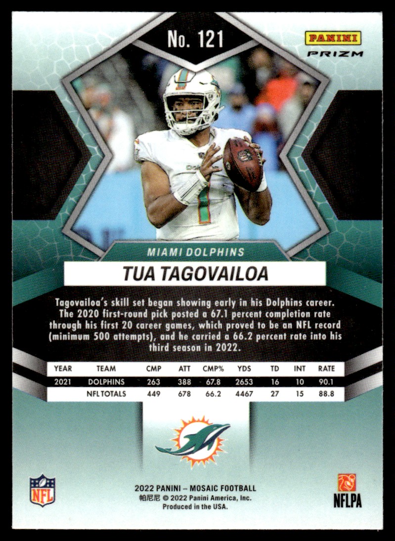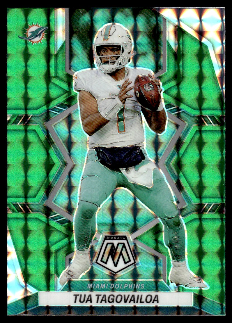 | Tua Tagovailoa Green Prizm #121 2022 Panini Mosaic Green Miami Dolphins |