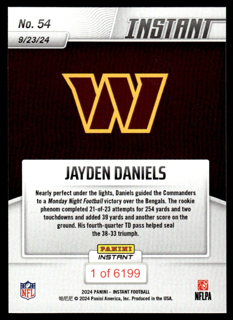 | Jayden Daniels Rookie Dazzles In Win #54 2024 Panini Instant Football Washington |