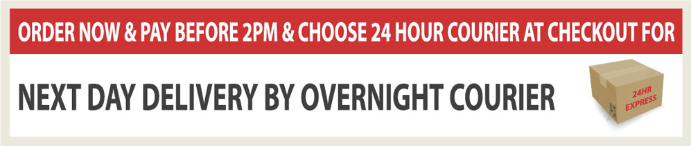 Orders received after 2pm or on weekends will be dispatched on next working day.