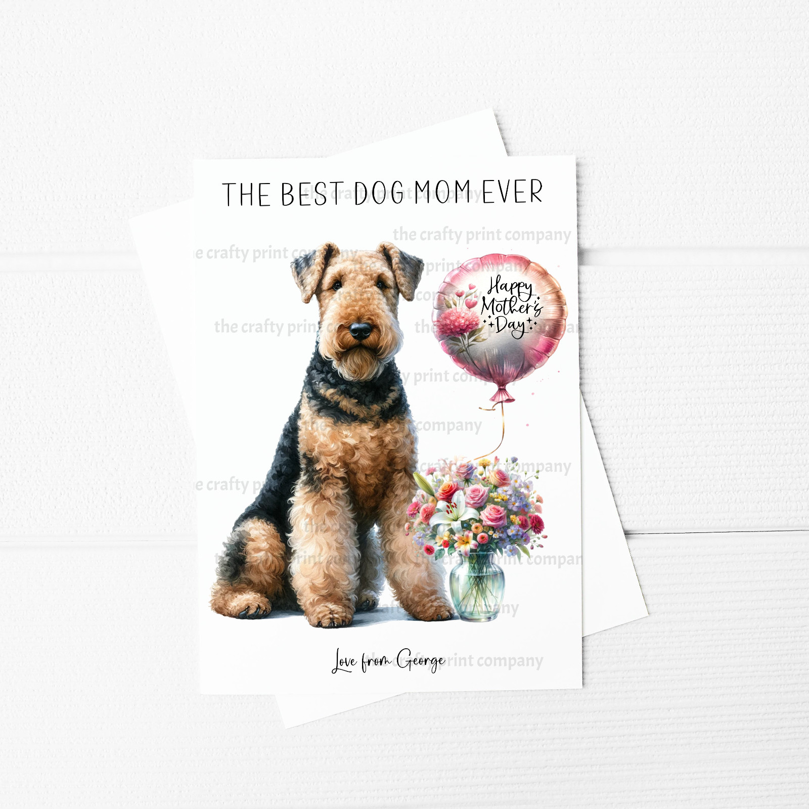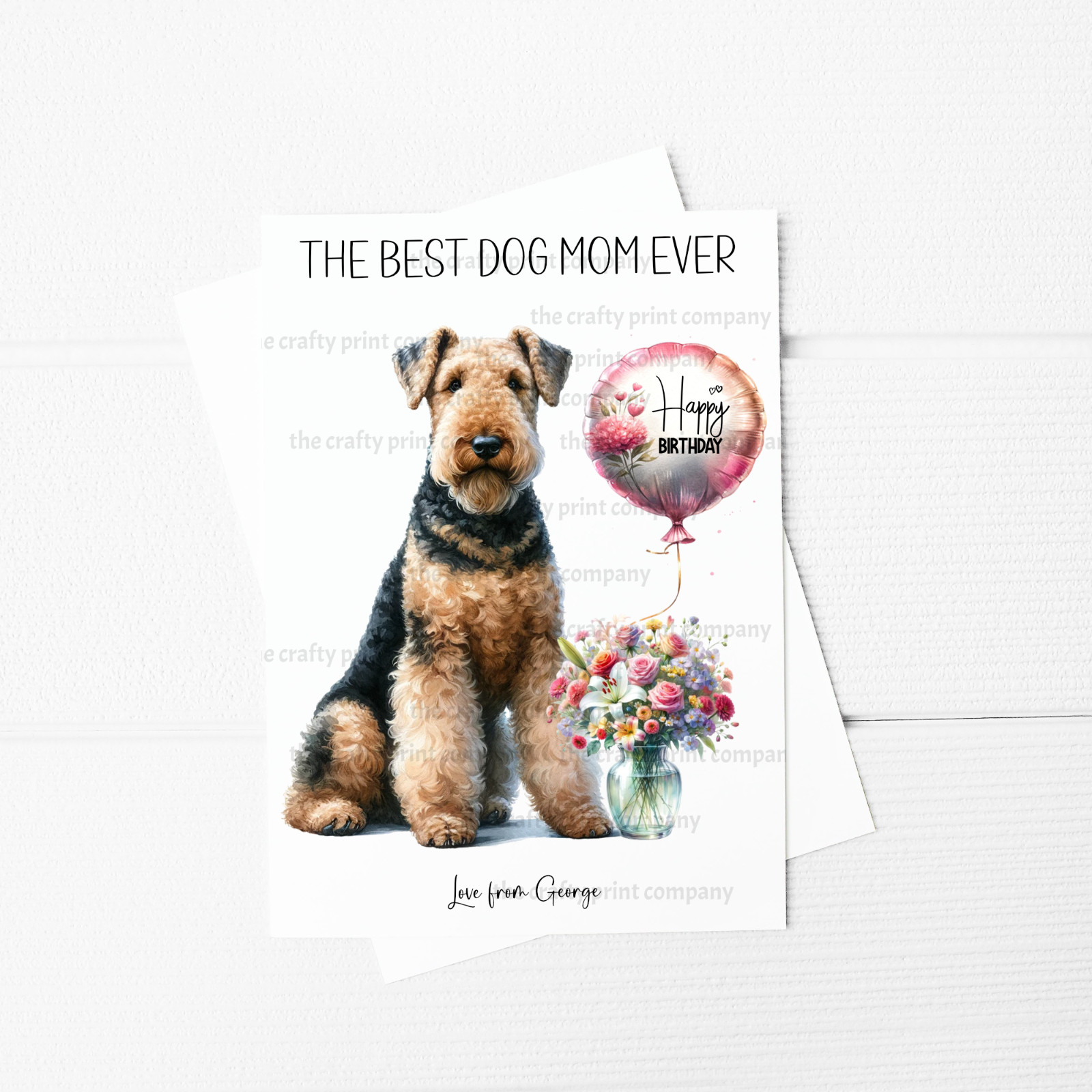 The Best Dog Mom Ever Airedale Terrier personalised A5 Greeting Card