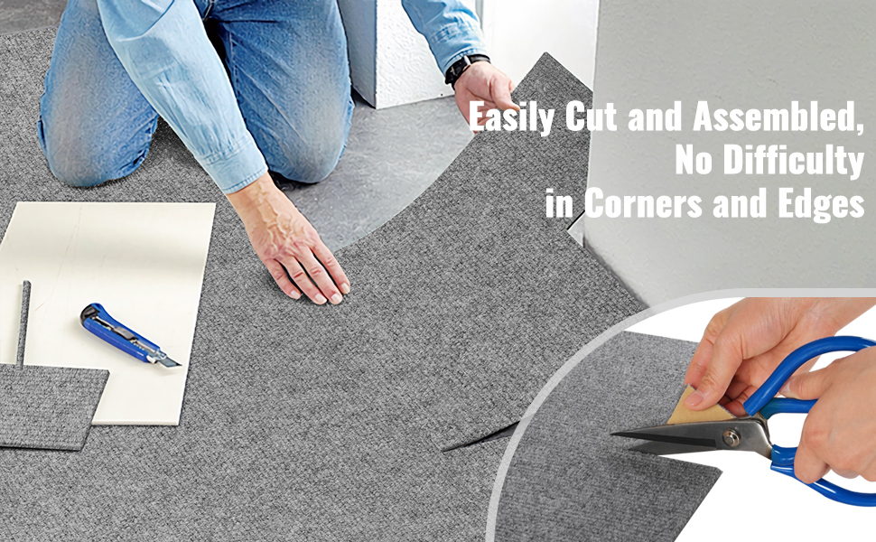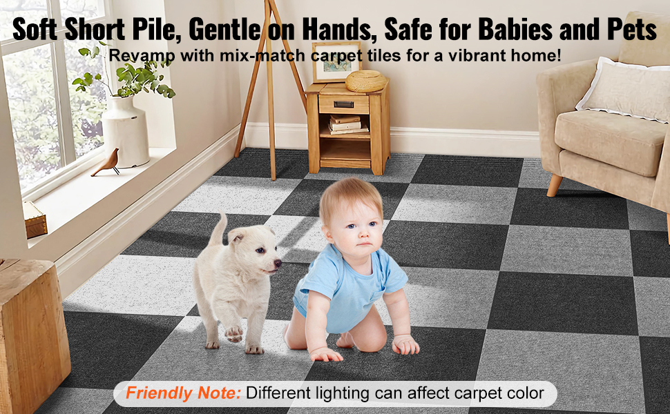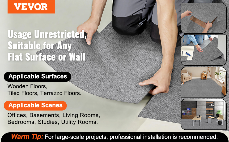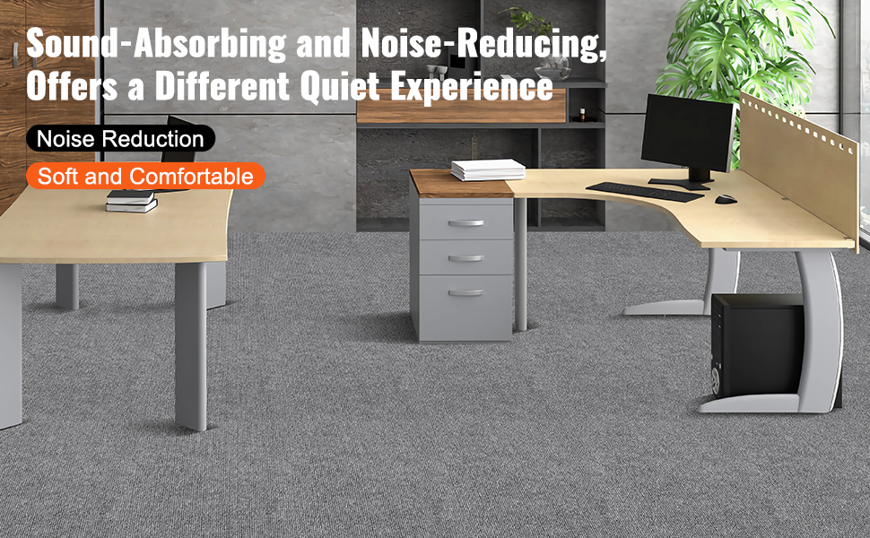 This solid color modular carpet is incredibly versatile, featuring a short pile surface, easy maintenance, and built-in adhesive backing. No extra adhesive is needed, enabling hassle-free replacement of damaged tiles. It enhances warmth, reduces noise, cushions, and safeguards hard floors.