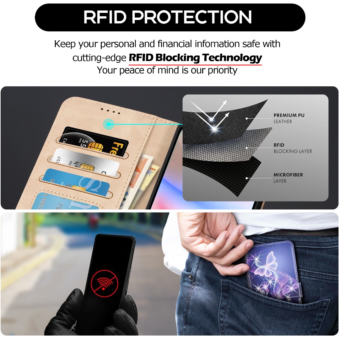 • Introducing our Wallet Flip Case with RFID Blocking technology, the ultimate solution for keeping your phone and personal information secure. This sleek and versatile case offers much more than just protection – it combines style, convenience, and peace of mind in one compact package.