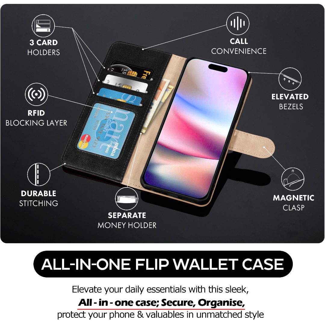 • Upgrade your phone accessory game with our Wallet Flip Case. It's not just a case – it's a smart and reliable companion that offers security, organization, and style. Don't compromise on your phone's protection – get yours today and experience the difference.
