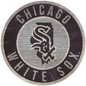 Chicago White Sox 12 Inch Wood Sign Round State Design [NEW] MLB Cave Wall |