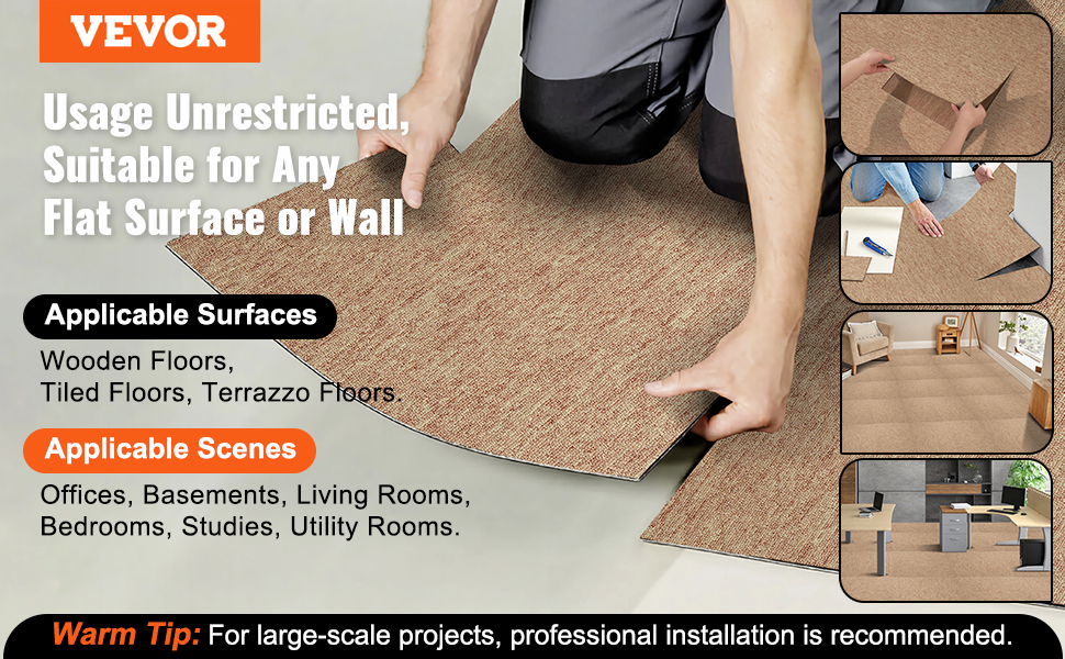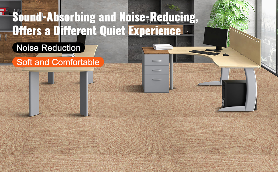 This modular carpet is incredibly versatile, featuring a short pile surface, easy maintenance. No extra adhesive is needed, enabling hassle-free replacement of damaged tiles. It enhances warmth, reduces noise, cushions, and safeguards hard floors.