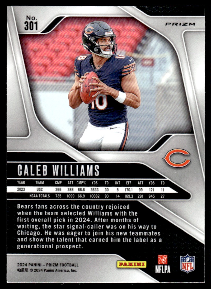 | 2024 Prizm Silver Prizms Caleb Williams Rookie Chicago Bears #301 |