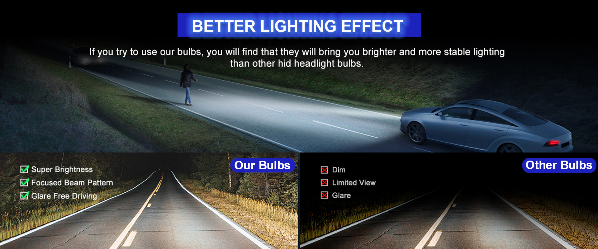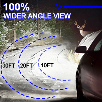 300% brighterTop Automotive-Grade COB LED chips.Super focused beam pattern design provides wider and farther lighting range , which makes signs, reflectors and lane markings highly visible on rural roads and in mountainous areas.