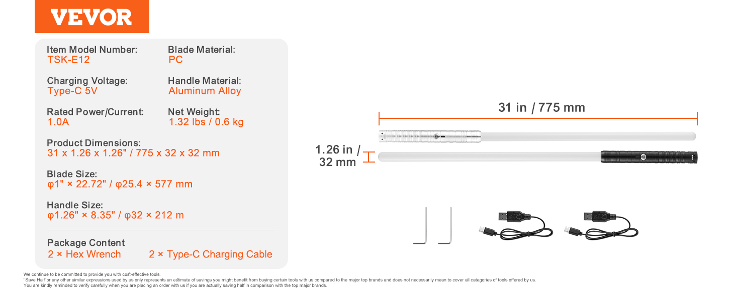 31" Light Sword: This rechargeable light sword measures 31 inches in length, with a 8.35" handle that's easy for both adults and children to hold, making it ideal for parent-child interaction anytime.