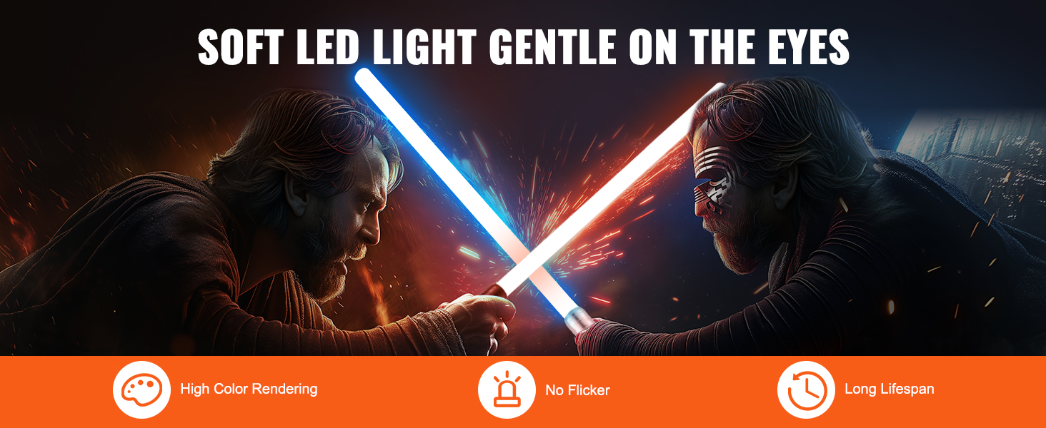 Equipped with LED lights, the real light up sword features soft and comfortable lighting that ensures no glare even when the light moves. It boasts high color rendition, no flickering issues, and long-lasting use.