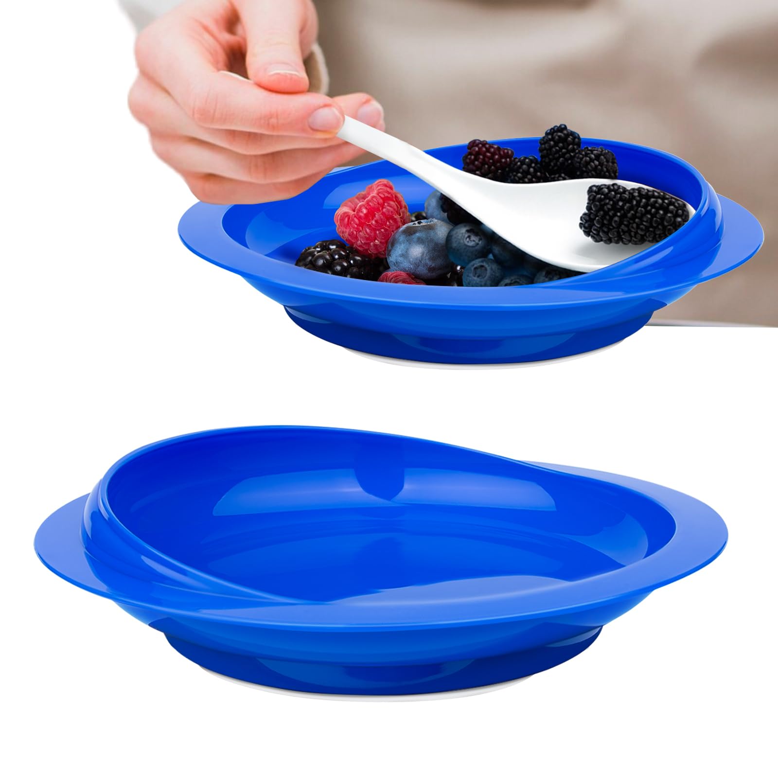 2Pack Spill Proof Scoop Plate with Non-Skid Suction Base, Adaptive Self-Feeding Dinnerware for Elderly and Disabled