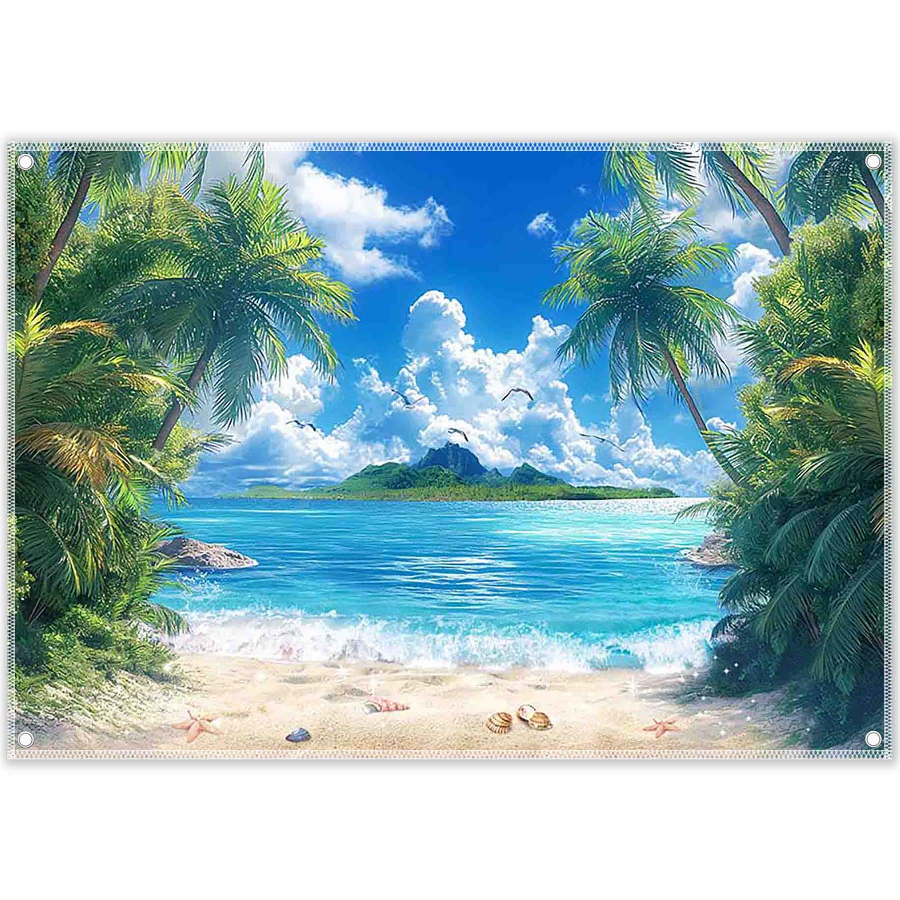 Fabric 8x6ft Tropical Summer Beach Photography Backdrop Hawaiian Seaside Palm Trees Ocean Island Background Luau Birthday Party Decorations Photo Booth Props