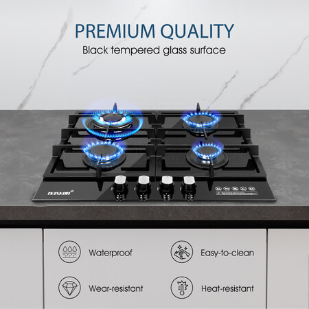 Delight in top-notch cooking with our Maxkon 60cm Gas Cooktop Cooker Hob Stove. Engineered with four burners and an 8kw cooking power, this gas cooker delivers unparalleled versatility and efficiency, allowing you to prepare a wide range of dishes easily. Additionally, it features a front control panel and a toughened glass surface that is fully sealed and easy to clean. The melt-proof metal knobs offer precise control over heat settings, while the heavy-duty cast iron pan stands provide a sturdy and stable base for your cookware. Eliminate the need for manual lighting to achieve a hassle-free cooking experience with its flame failure safety device. Moreover, the child safety lock feature creates extra protection and peace of mind. Versatile and adaptable, our gas stovetop with a conversion kit allows you to seamlessly switch between natural gas and LPG, depending on your preference or availability.