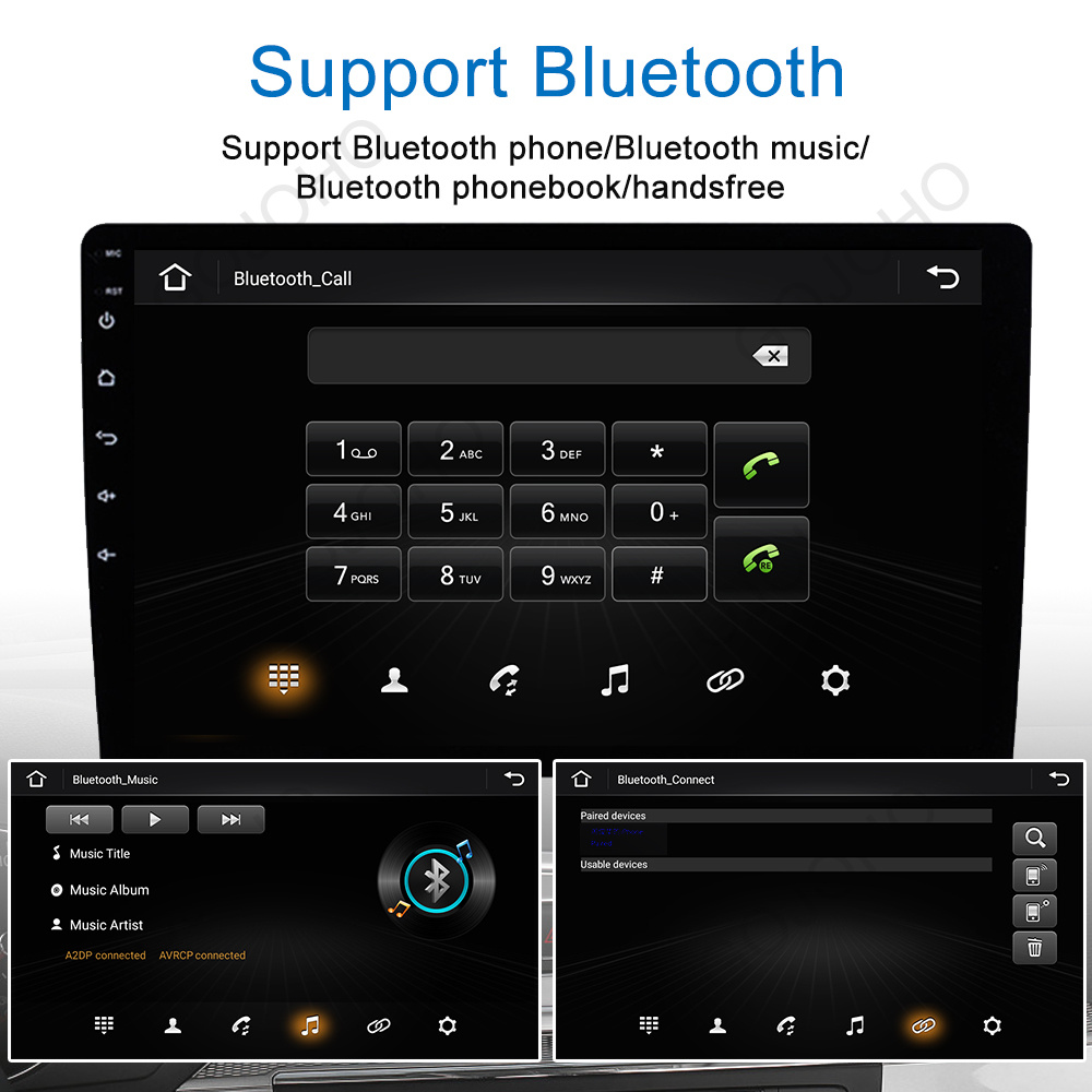 ●Built-in Bluetooth with A2DP/Hands Free/Phone book:Bluetooth hands-free calls,Bluetooth music player,Auto loading phonebooks