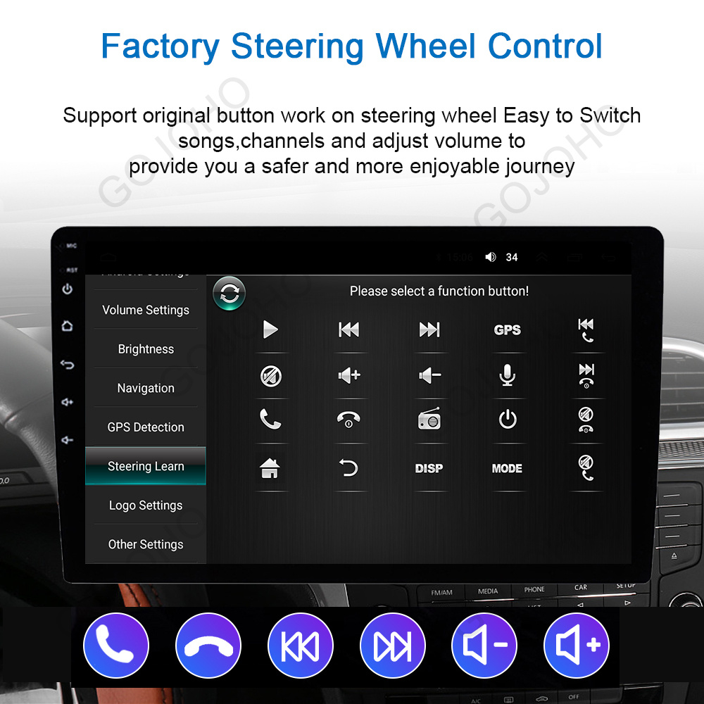 ●Steering wheel control: Through it you can control the functions you need by steering wheel, more convenient