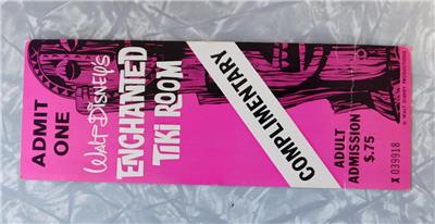 Scarce Complimentary Adult Admission Ticket (75 cents) from the opening year of Disneyland's "Enchanted Tiki Room"