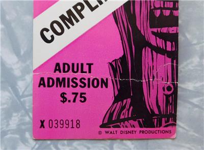 ~ Scarce Complimentary Adult Admission Ticket (75 cents) from the opening year of Disneyland's "Enchanted Tiki Room"