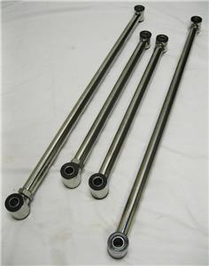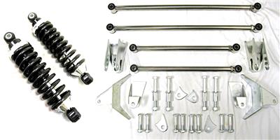 This is a brand new rear triangulated 4-link kit with a PAIR of new Top Quality 180 lb rear coil over shocks. This kit is complete with everything you need to install. It includes: