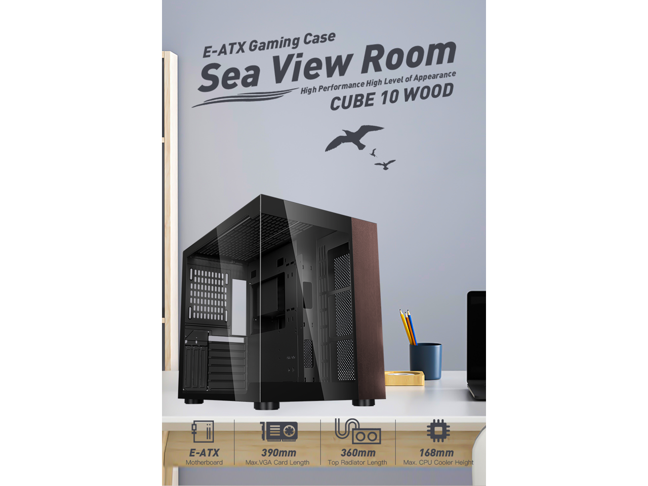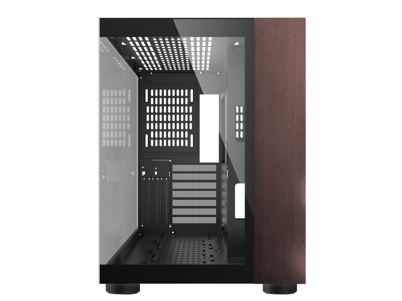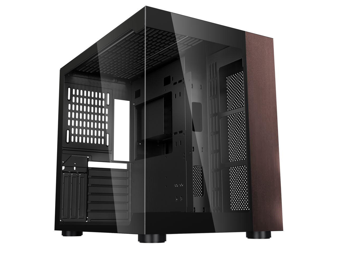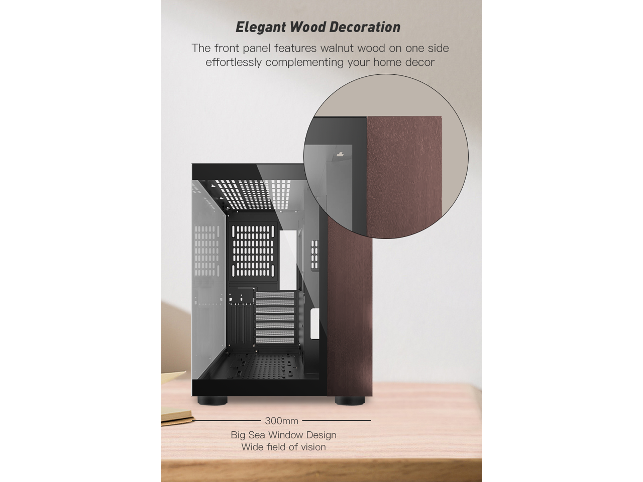 DIYPC DIY-CUBE10-Wood Black USB3.0 /Type C ATX Mid Tower Gaming Computer Case w/ Tempered Glass Panel w/Walnut Wood (Fan Is Not Included )