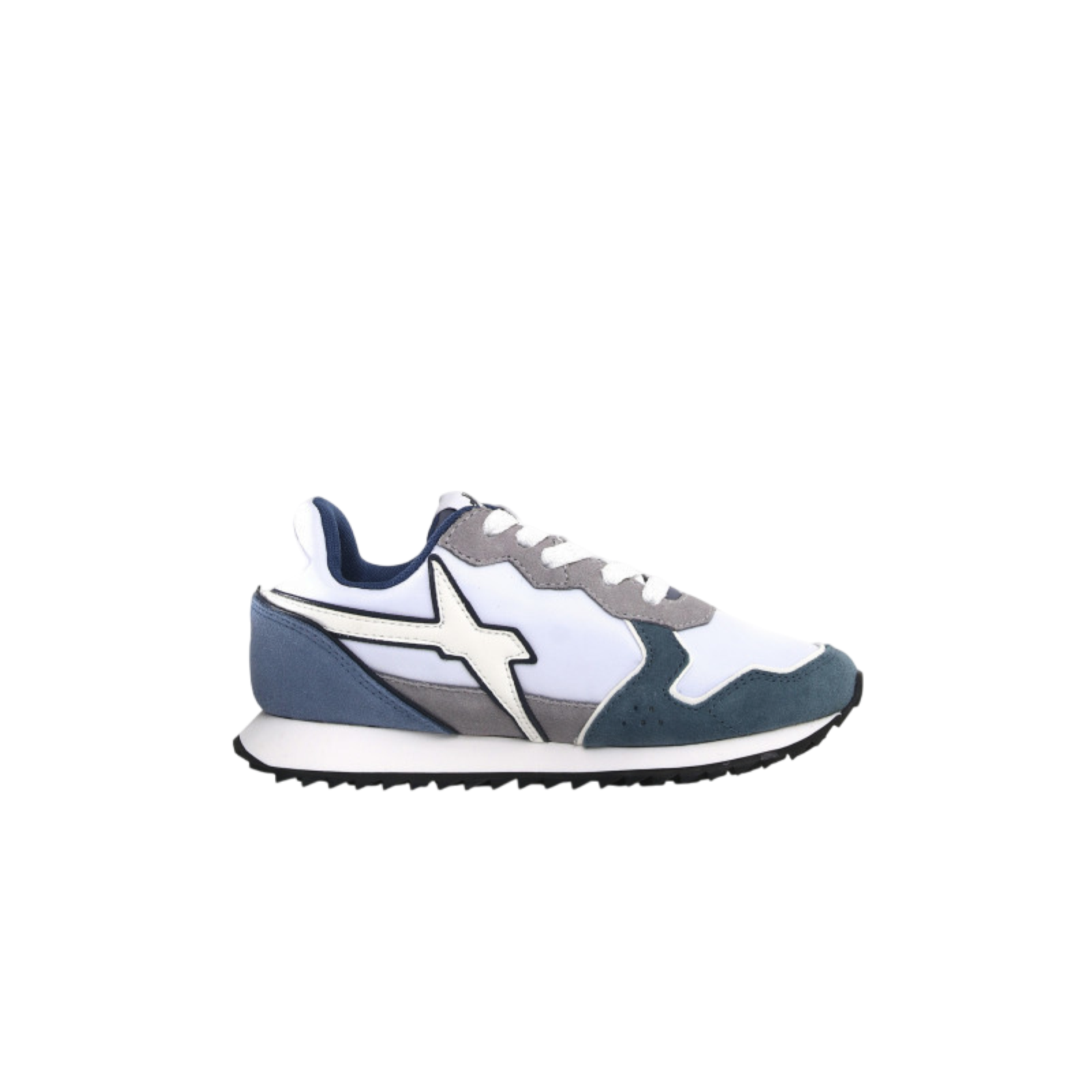 Sneaker in tessuto tecnico e suede, con tonalità a contrasto. Fondo running in gomma ultra leggera bicolor e logo stampato.