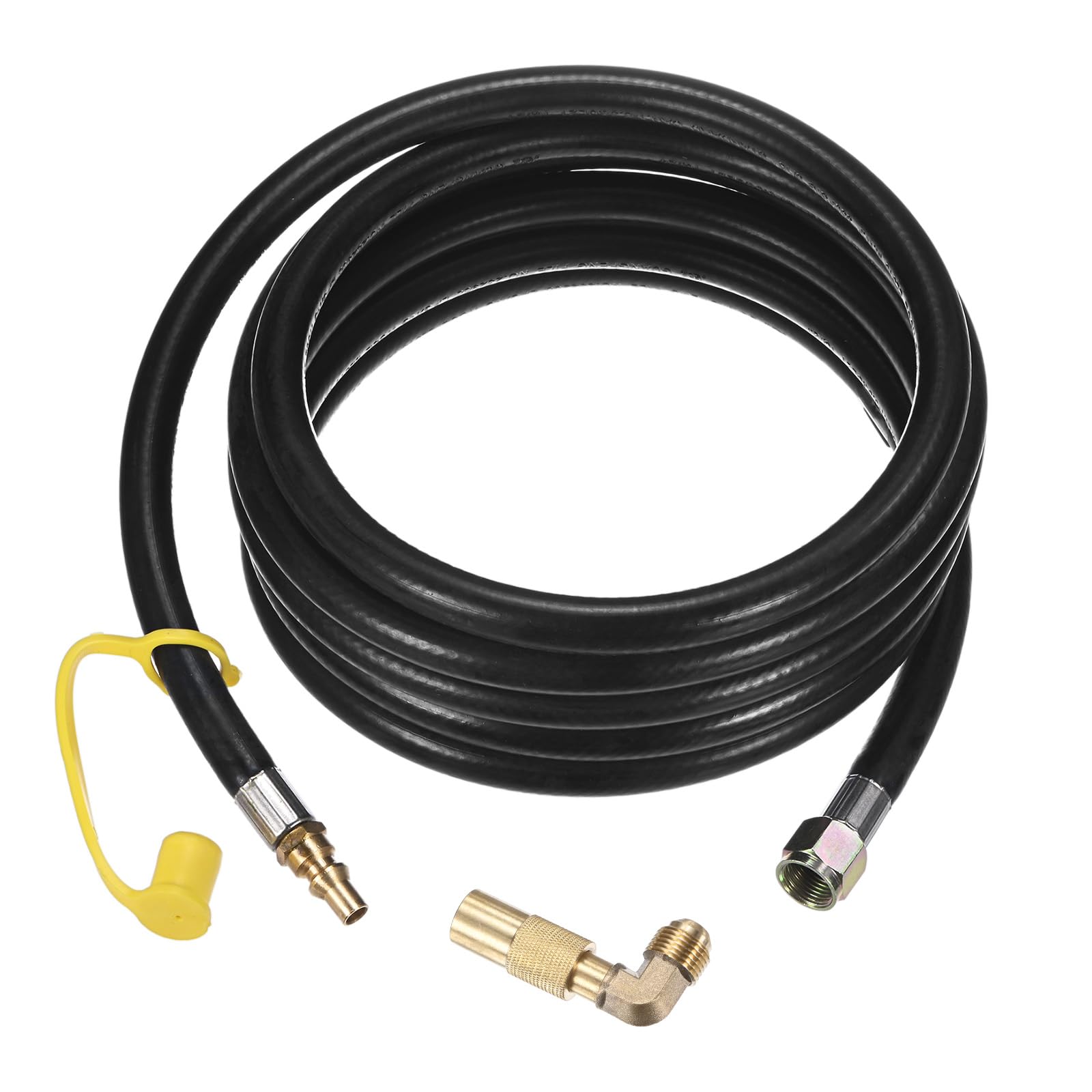 - [Multipurpose Use] - The propane quick-connect hose is suitable for RV systems to connect to 17-inch and 22-inch grills. It can also be disassembled to connect to other types of LPG grills, camping stoves, fire pits, grill pans, propane heaters and other equipment with a 3/8-inch male flare. Save the trouble of dragging heavy propane tanks.