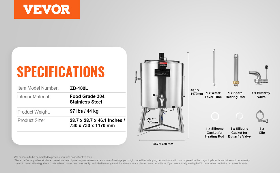 The pasteurizer is constructed with food-grade 304 stainless steel for the inner tank and a sturdy stainless steel outer shell, offering corrosion resistance, ensuring easy cleaning and a long lifespan.