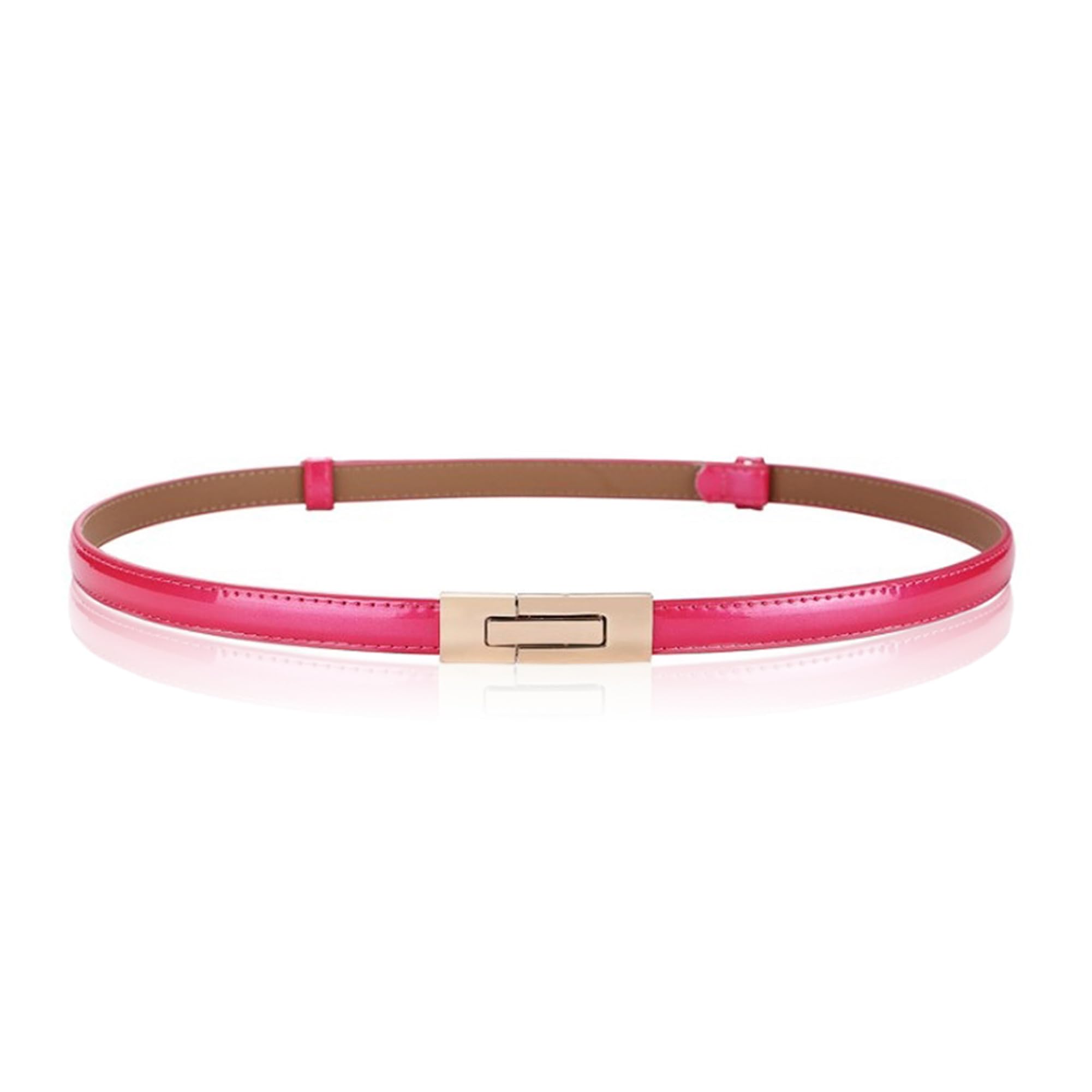 Women Skinny Waist Belt with Gold Buckle Adjustable Patent Leather Thin Belt for Dress Jeans Coat Rose