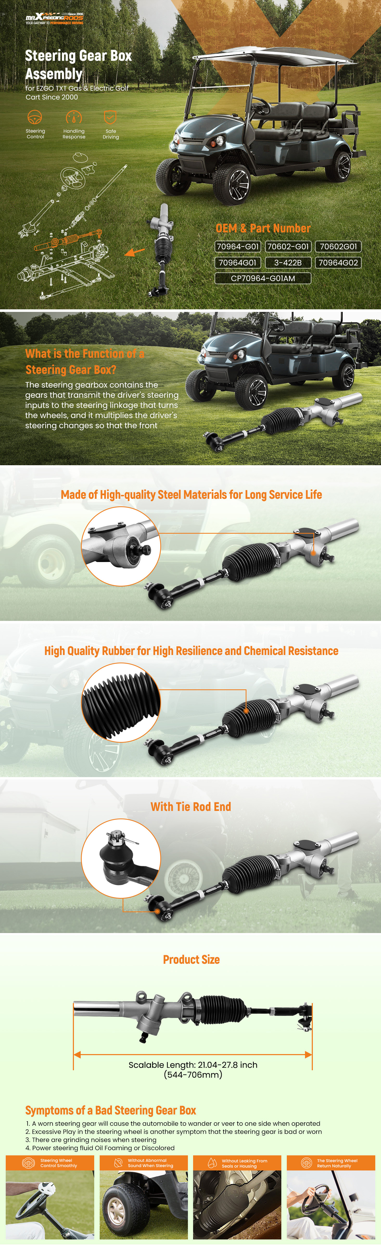 1. For EZGO steering box assembly (rack and pinion).